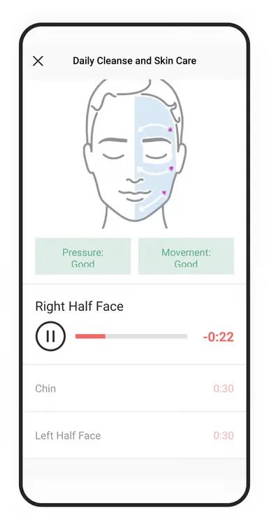 Get instant guidance about your cleansing pressure and movement to have that perfect touch.